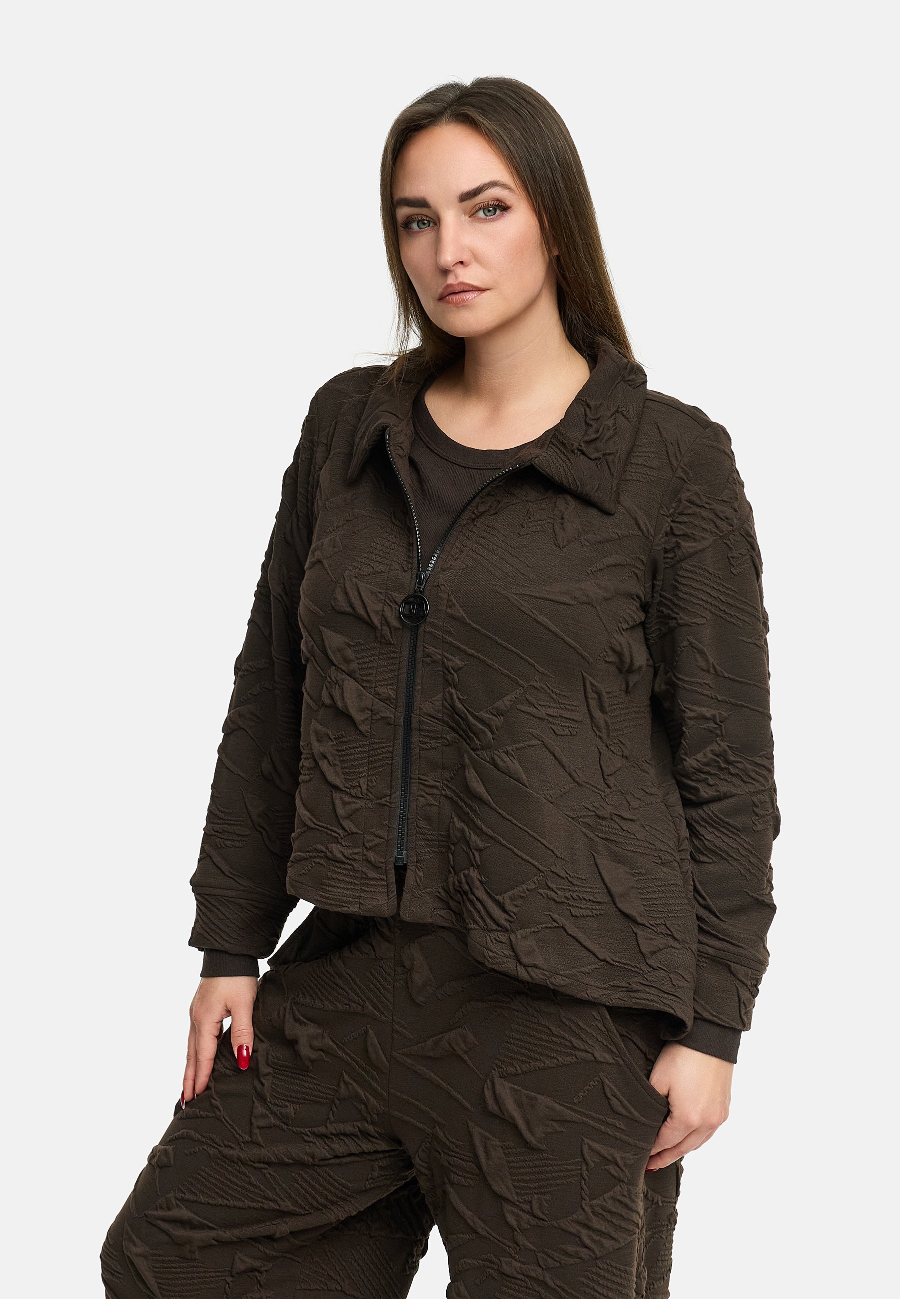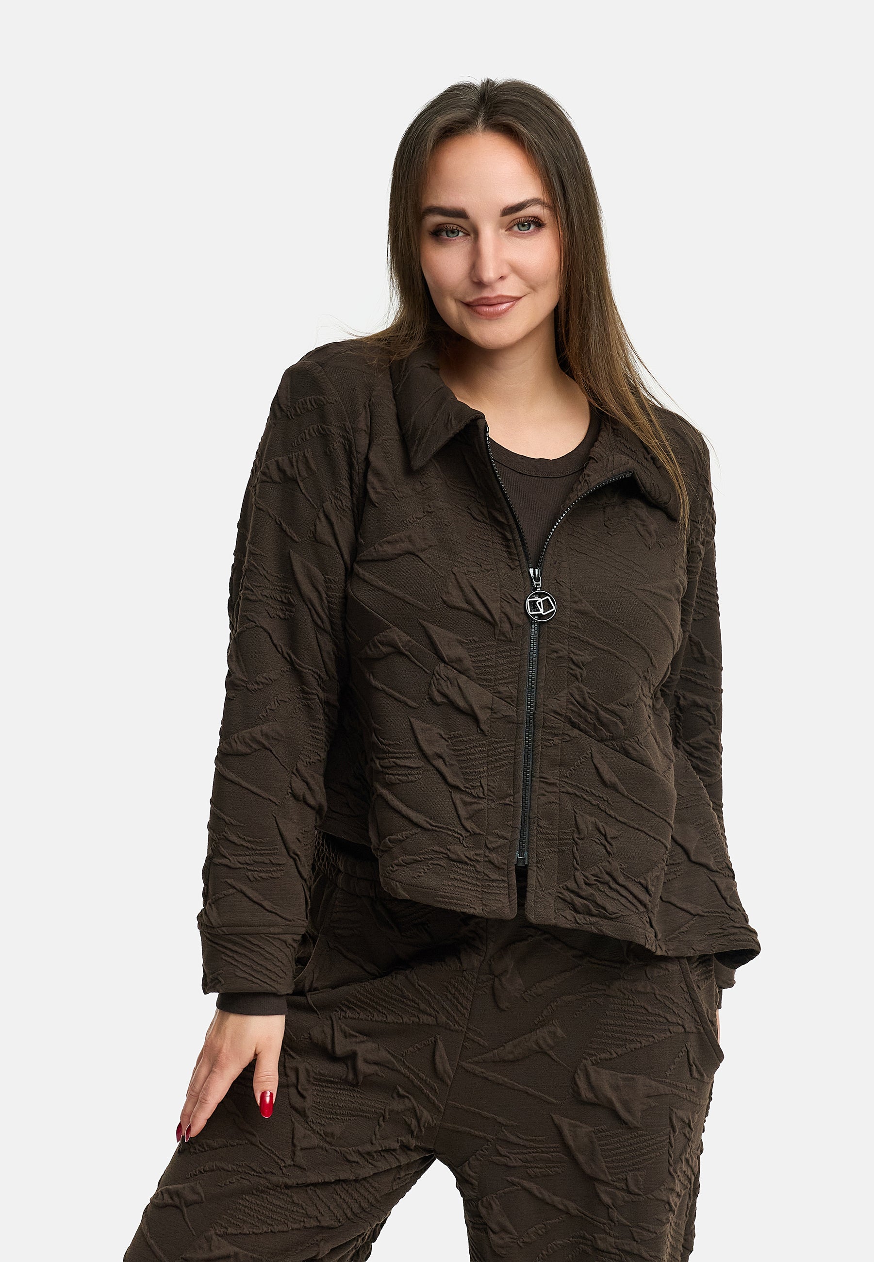 • Details: Allover reliëfstructuur, vormgevende deelnaden, subtiele high-low zoom, zachte binnenmanchetten aan de mouwen