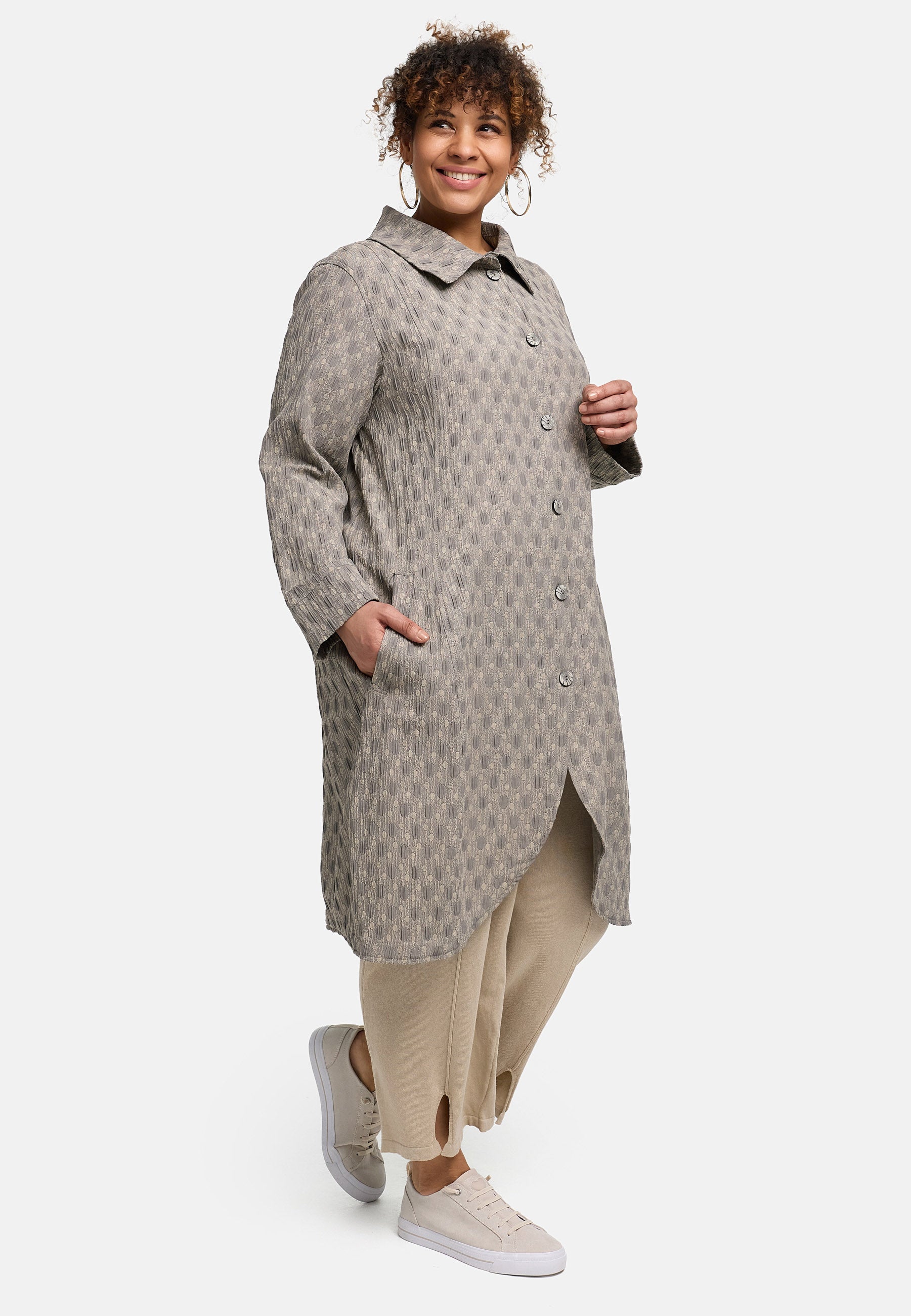 „Olina“ ist dein unkomplizierter Begleiter zwischen Büro, Stadtbummel und Wochenend-Trip. Der strukturiert gewebte Jacquard verleiht Tiefe und eine edle Haptik, während die lockere Weite layering-tauglich bleibt. Der smarte Hemdkragen und die durchgehende Knopfleiste spielen den Mantel mal elegant, mal sportiv; der runde Tulpen-Saum vorn und der bewegliche Rückenschlitz setzen moderne Akzente und geben dir bei jedem Schritt Freiheit.