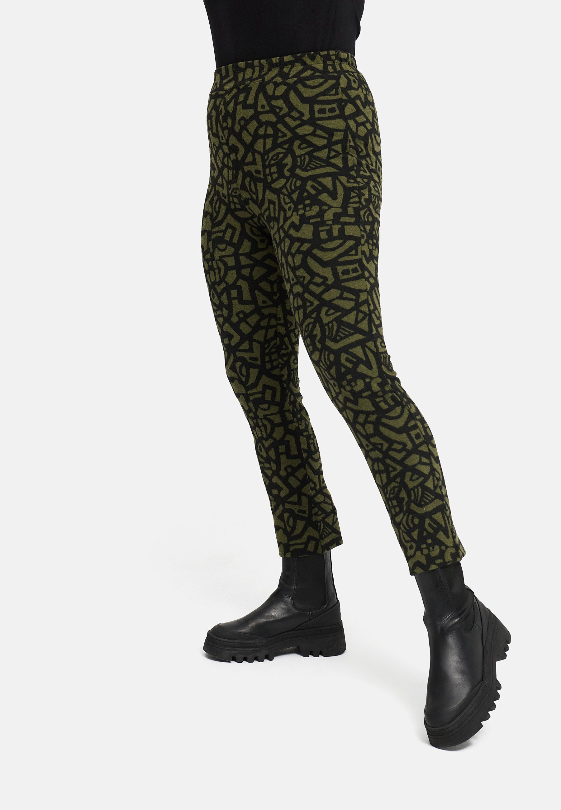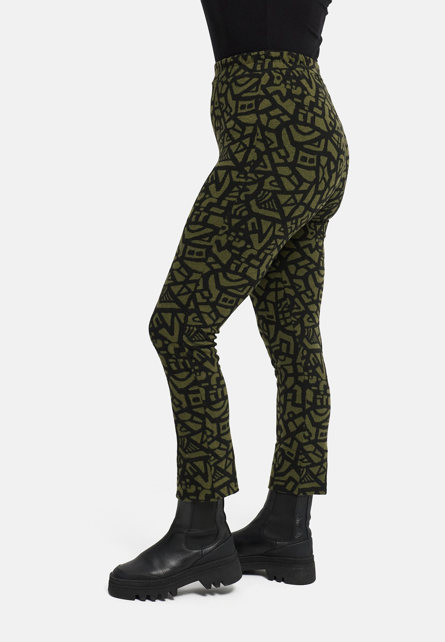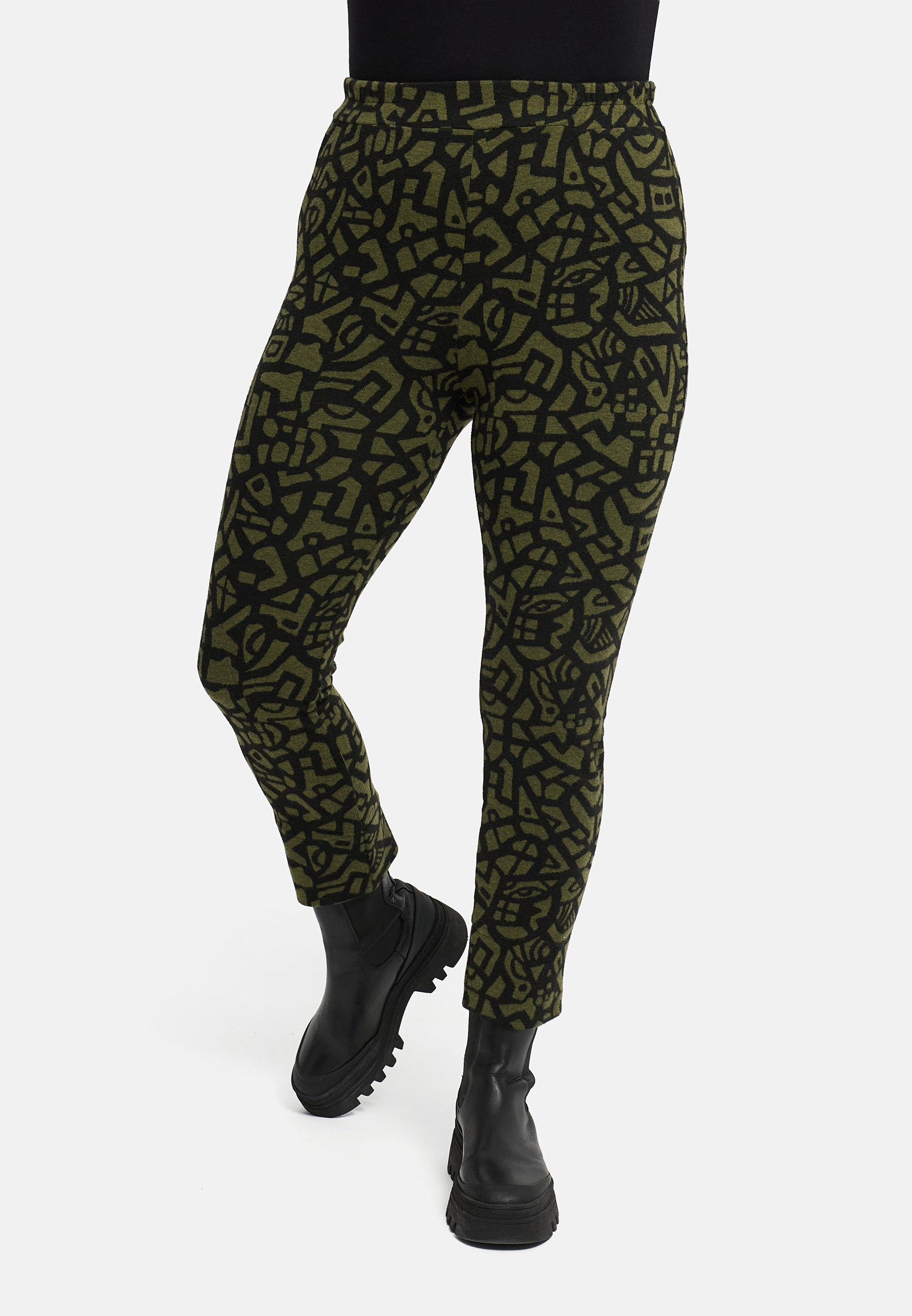 Die „Seriva“ Treggings vereint Leggings-Komfort mit Hosen-Look – anschmiegsam, elastisch und mit einem markanten Jacquard-Muster, das jedes Basic sofort aufwertet.