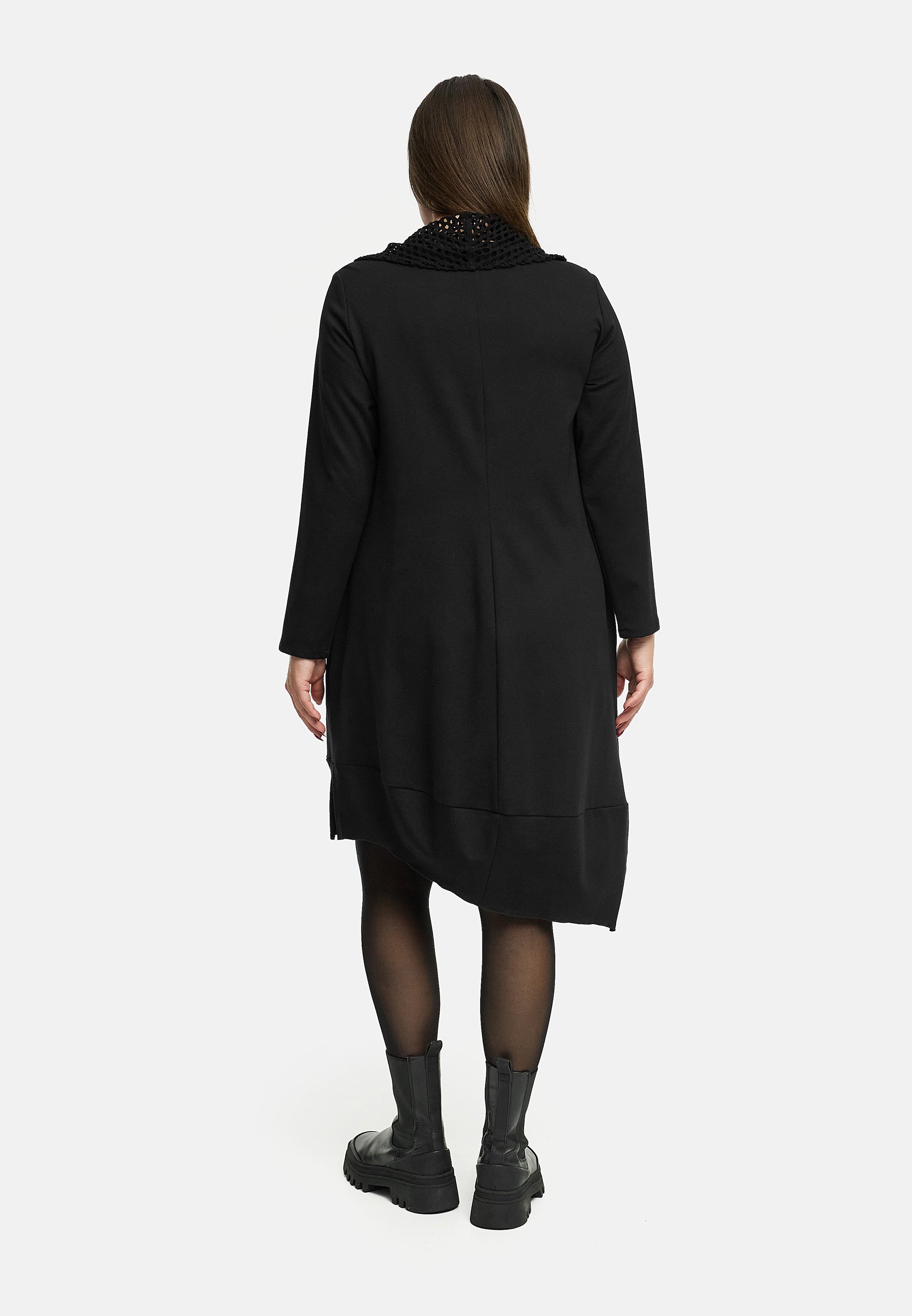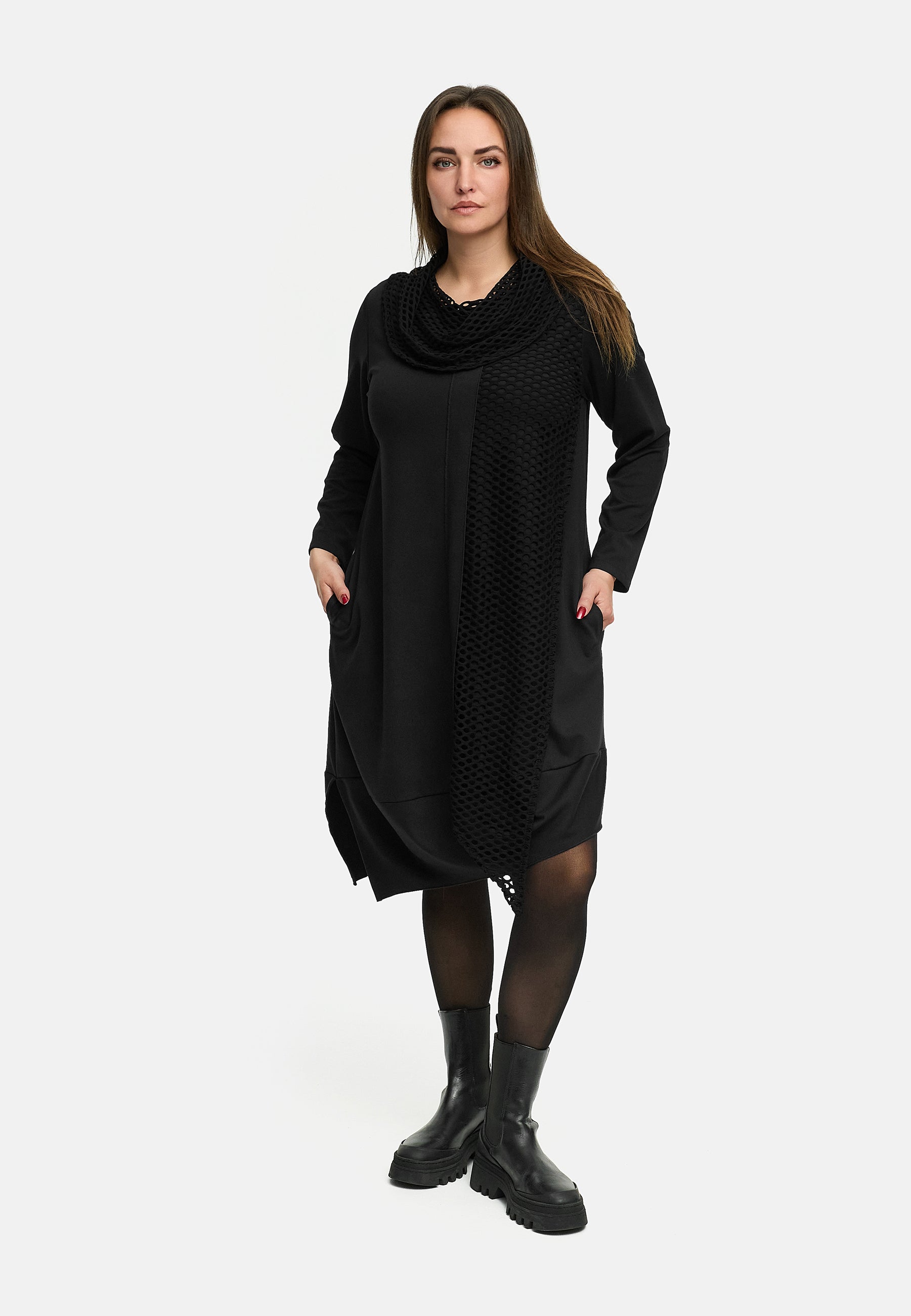 „Lunet“ steht für moderne Eleganz mit künstlerischem Anspruch. Das Kleid kombiniert zwei Materialien zu einem spannenden, monochromen Spiel aus Struktur und Bewegung. Der weich fallende Stoff sorgt für Komfort, während der raffinierte Netz-Einsatz vorn und am Kragen einen modischen Blickfang schafft.